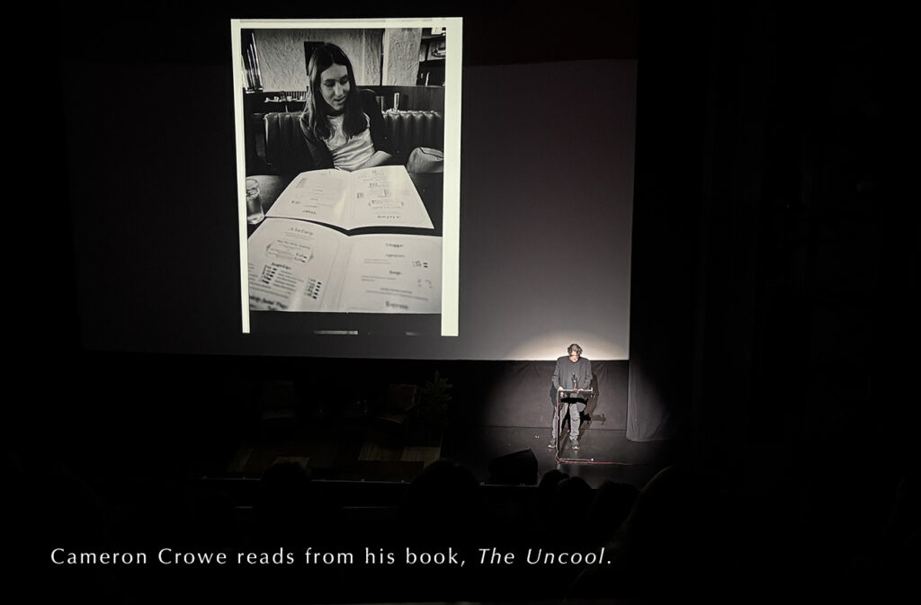 The night opened with a full hour of projected images: bands, backstage moments, magazine covers—decades of Crowe’s life in music journalism. The content itself was enjoyable, even affectionate, but the pacing was off. Instead of warming the room up, the montage felt like an overture with no clear indication of when the main event would begin. For a writer-director famous for soundtracks and cinematic timing, the choice was oddly static.